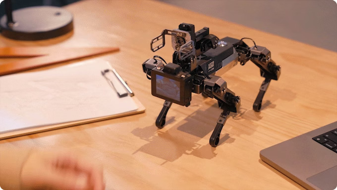 XGO 2 es un robot cuadrúpedo con IA de tamaño de sobremesa, con 12 grados de libertad y un brazo con pinza, controlado por una Raspberry CM4 para aplicaciones de cómputo de borde con IA, que puede lograr movimiento omnidireccional, control de posición en seis dimensiones, estabilidad de postura y múltiples marchas de movimiento.